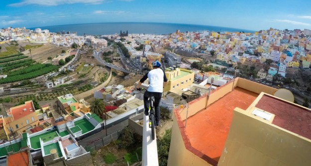 Cascadia – Bitte jetzt nicht abstürzen: Danny MacAskills neues Video spielt in schwindelerregenden Höhen auf den Dächern Gran Canarias. Definitiv nichts für Leute mit Höhenangst!